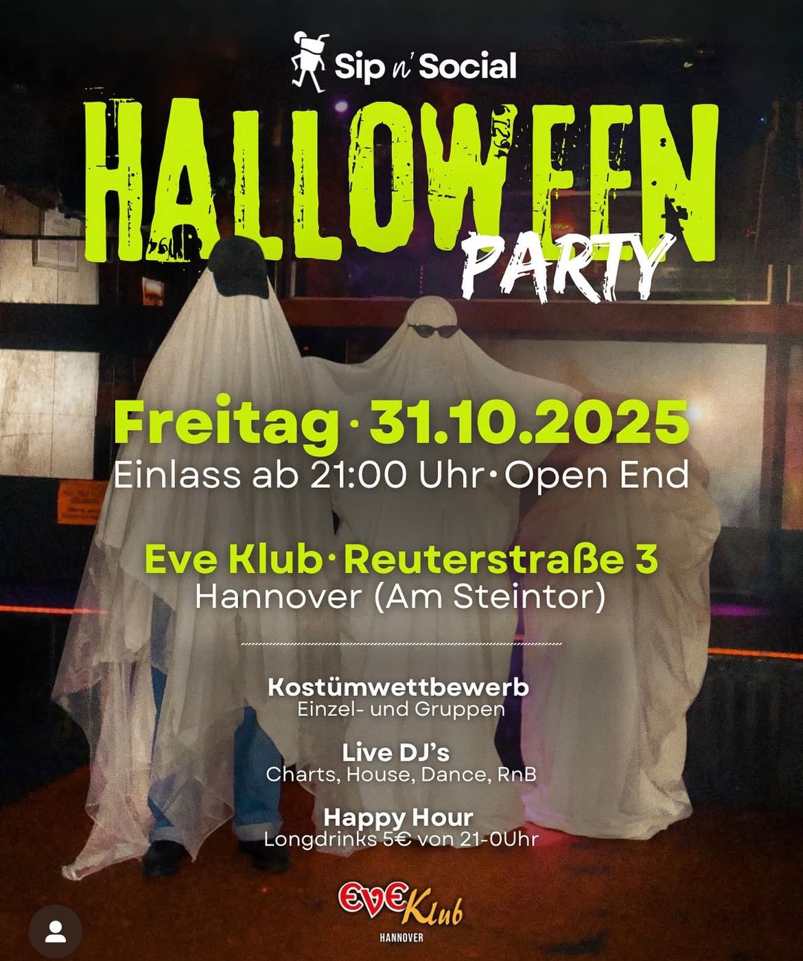 ** Viele weitere Specials, spooky Drinks & jede Menge Partyvibes! Tickets bei @sipnsocial_hannover im Story